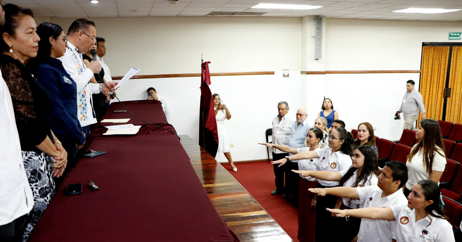 El director José Antonio Canto Esquivel realizó la toma de protesta a la nueva mesa directiva, conminándolos a “cumplir y hacer cumplir los estatutos del CESA del I.T. de Mérida, a ejercer su cargo con responsabilidad, transparencia y dedicación, y a trabajar incansablemente en beneficio de todos los estudiantes, guiándose siempre por los valores de la Institución” Al dirigir un mensaje, el director José Antonio Canto Esquivel destacó que en 63 años de operación de la casa de estudios, es la primera vez que la sociedad de alumnos es encabezada por una mujer y, que su cercanía con los estudiantes será clave en todo momento al interactuar con todas las carreras de los edificios norte y poniente, recogiendo todas las opiniones e ideas de interés común. A la vez, el director ofreció que en las autoridades del plantel y en la comunidad estudiantil tendrán aliados y en la dirección, un espacio de puertas abiertas.